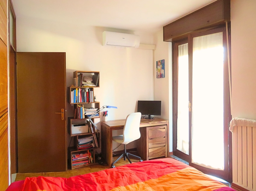 Trilocale di circa 100 mq in centro a Opera, con tripla esposizione interna, molto silenzioso e luminoso. L' appartamento è composto da un soggiorno doppio con accesso alla loggia alla quale si accede anche dalla cucina abitabile, disimpegno, grande camera matrimoniale nella quale è stata ricavata una cabina armadio e con accesso al balcone, seconda camera, doppi servizi di cui quello principale ampio e finestrato. L'appartamento è dotato di riscaldamento autonomo con caldaia nuova, aria condizionata, zanzariere e doppi vetri. Completa la proprietà una cantina di pertinenza.