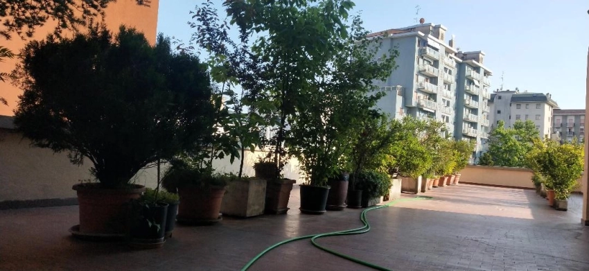 Privato vende senza commissioni di Agenzia. A pochi passi da Piazza Firenze - Fiera Milano City, appartamento in stabile signorile anni'50, di 154mq, terrazza al piano di 190mq di cui 15mq di loggiato, balcone di 3 mq, oltre al solaio di 16mq, per complessivi 220mq commerciali, al 1° piano con ascensore, molto luminoso e con soffitti alti metri 3.40. Ottimo investimento: uso abitazione, ufficio o studio privato. Libero subito. Attualmente si presenta con ampio ingresso da cui si accede al soggiorno con doppio affaccio sul viale alberato, segue la sala da pranzo con zona cucina a vista, illuminata da due finestre su strada e una porta balcone con accesso diretto al loggiato della terrazza. Sul lato opposto, luminosissimo e tranquillo, godendo di un ampia prospettiva, affacciano tre camere doppie, una camera singola e il balcone. Ampi disimpegni per comode cabine armadio e ripostigli. L'appartamento beneficia di una tripla esposizione e la terrazza dalle importanti metrature è ideale per accogliere un salotto all'aperto, una zona conviviale, una zona fitness e solarium, e con il confort di una pergola con vetrate panoramiche, si creano ambienti unici da vivere tutto l'anno in completo relax in una terrazza piantumata. Si dispone di uno spazio esclusivo nel cuore della città in assoluta autonomia. Porta blindata, infissi con doppi vetri in alluminio all'esterno e di legno rovere internamente, tutti con apertura vasistas, persiane in alluminio, tapparelle in PVC su strada ed